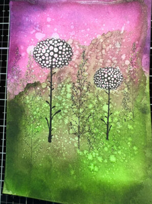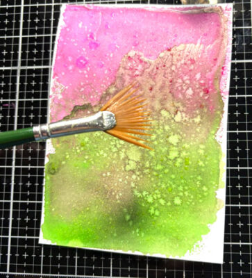 À l’aide d’un pinceau éventail, ajoutez un peu d’eau sur l’image et séchez de nouveau ou épongez avec un essuie-tout: