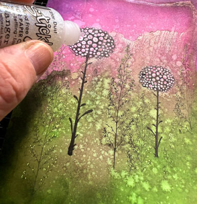 Ajoutez un peu de Stickles Stardust sur quelques petits cercle sur les fleurs pour ajouter de la brillance: