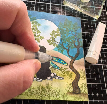 Un peu de luisant sur les ailes avec le crayon Zig Wink of Stella clair: