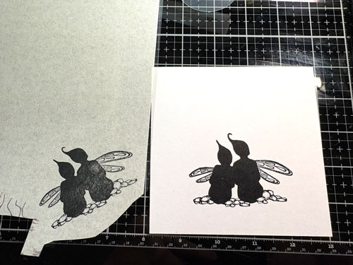 Puis étampez une deuxième fois mais sur le papier de masquage (à gauche ci-dessous):